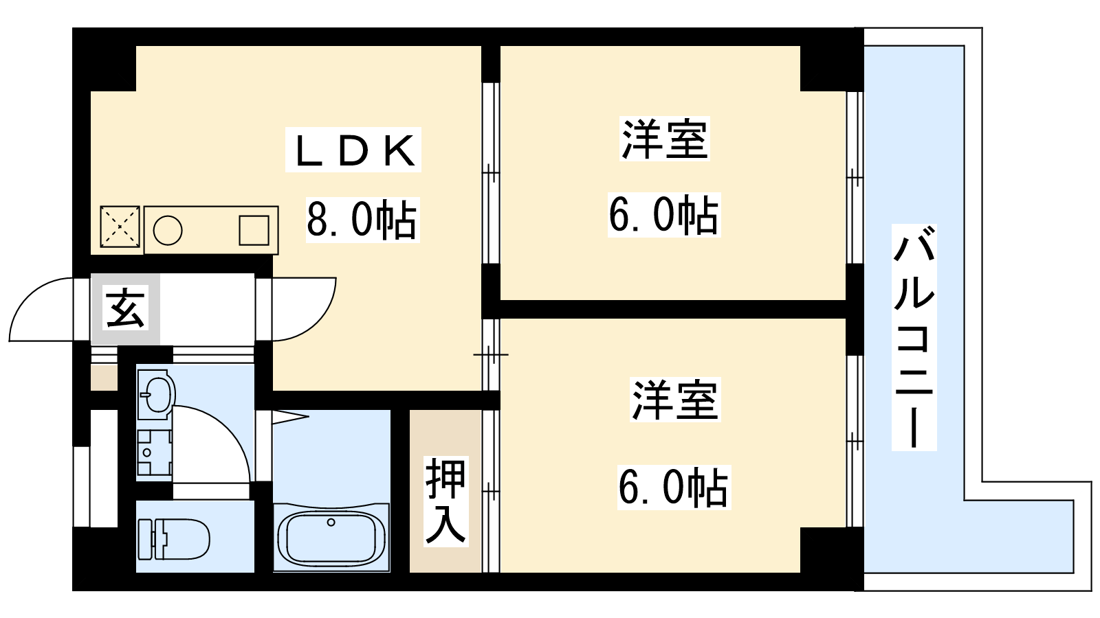 - 洋室6帖、洋室6帖、LDK8帖