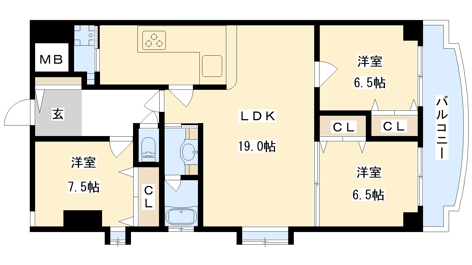 - 洋室7.1帖、洋室6.4帖、洋室6.4帖、LDK18.8帖