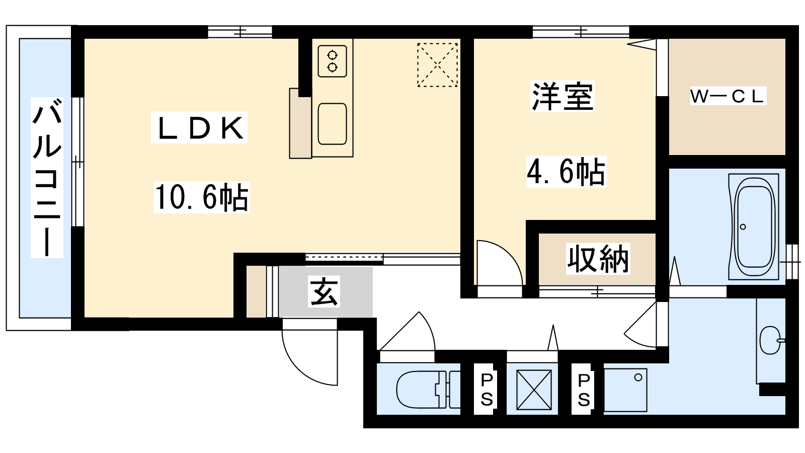 - LDK10.6帖、洋室4.6帖