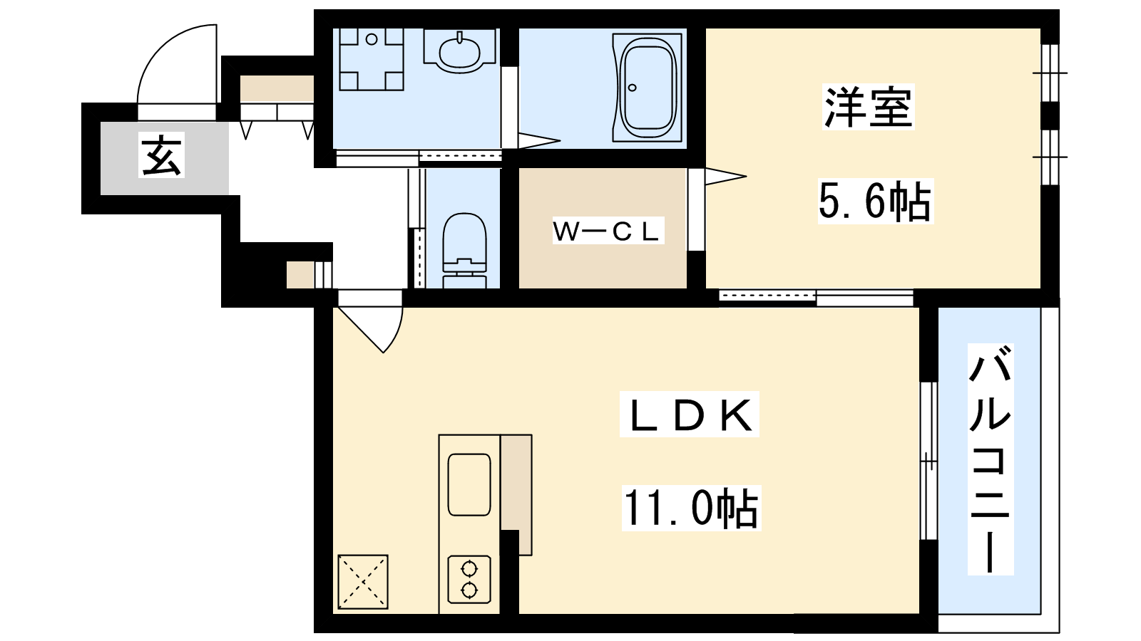 - LDK11帖、洋室5.6帖
