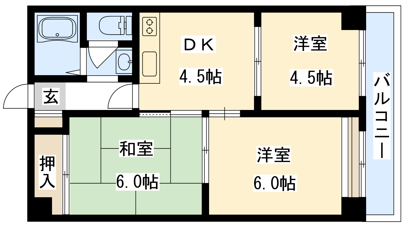 - DK5帖、洋室4.5帖、和室6帖、和室6帖