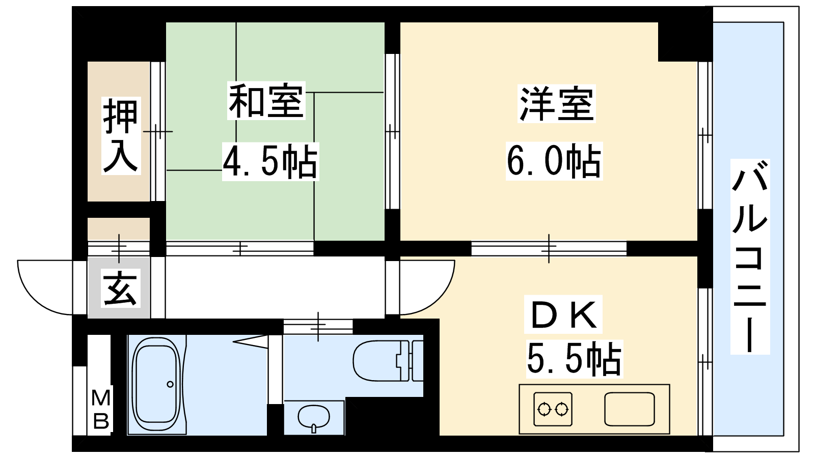 - DK5.5帖、和室4.5帖、洋室6帖