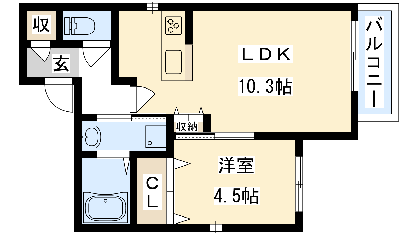 - LDK10.3帖、洋室4.5帖