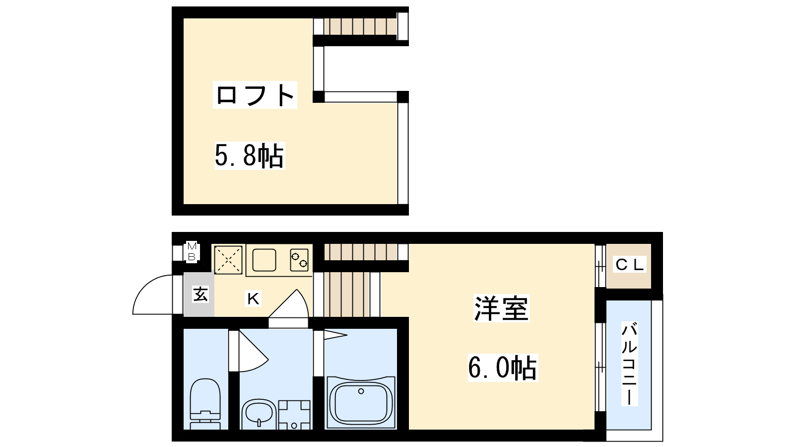 - K2帖、洋室6帖