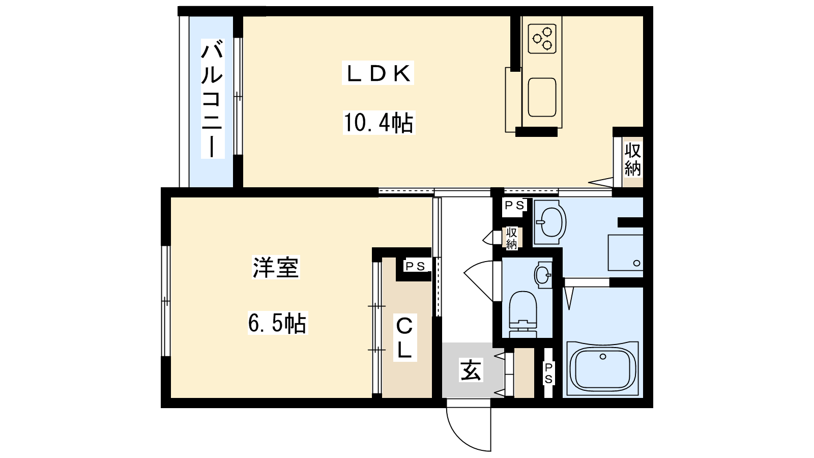 - LDK10.4帖、洋室6.5帖