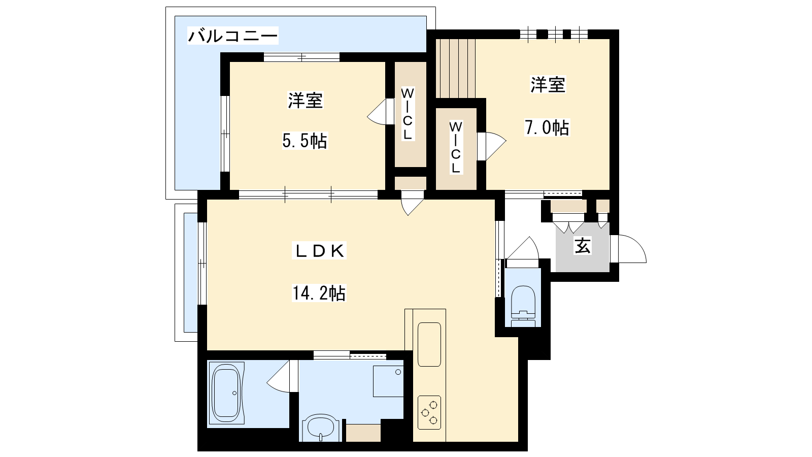 - LDK14.2帖、洋室7帖、洋室5.5帖