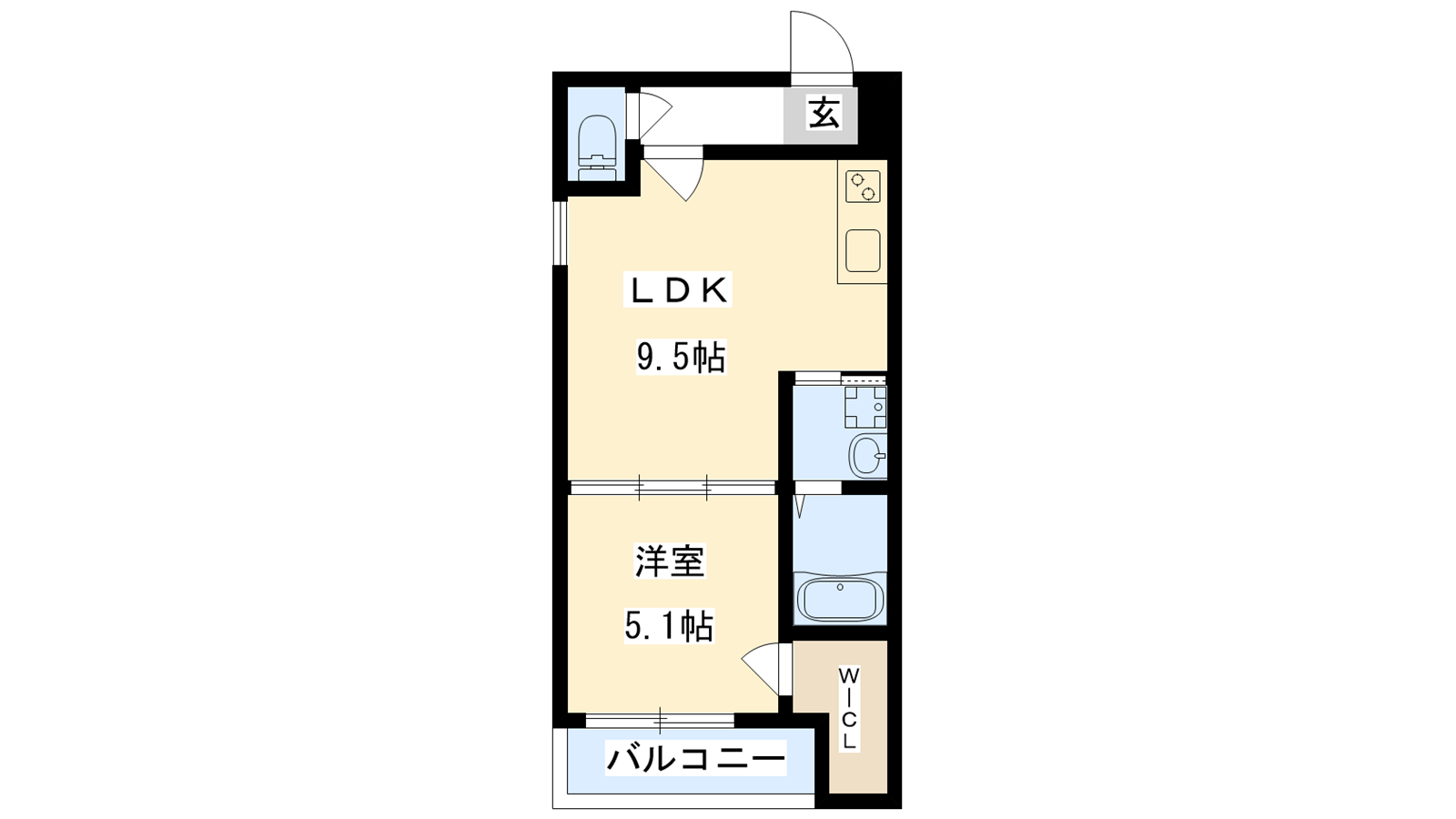 - LDK9.5帖、洋室5.1帖