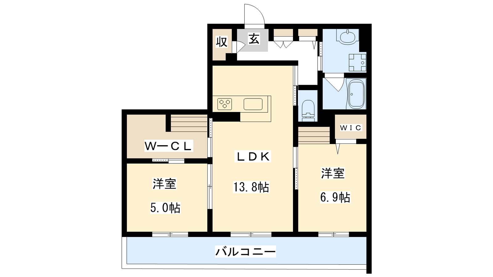 - LDK13.8帖、洋室6.9帖、洋室5帖