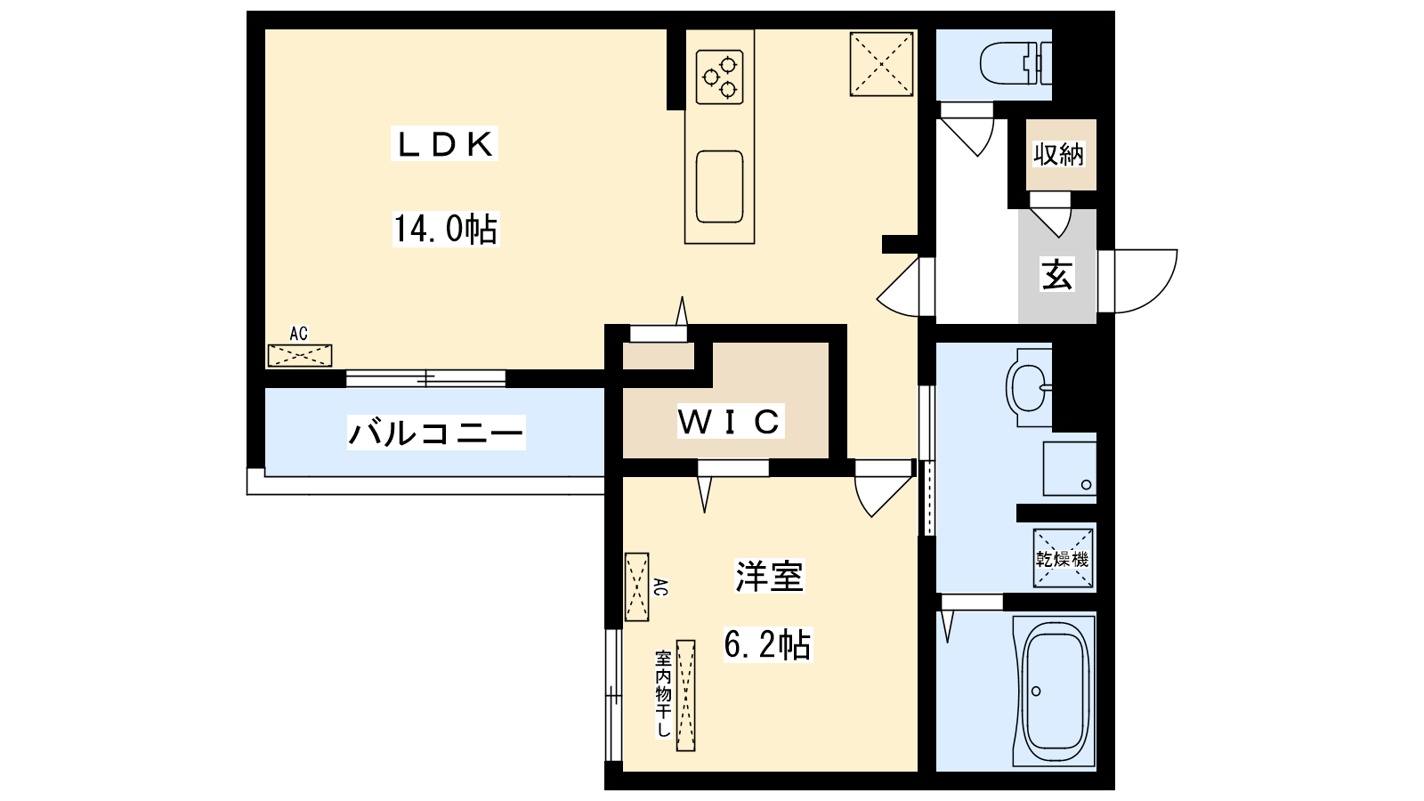 - LDK14帖、洋室6.2帖