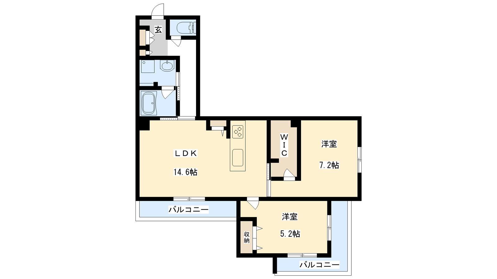 - LDK14.6帖、洋室7.2帖、洋室5.2帖