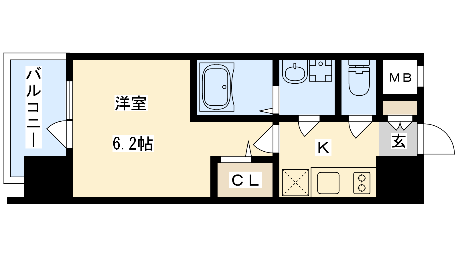 - K2.2帖、洋室6.2帖