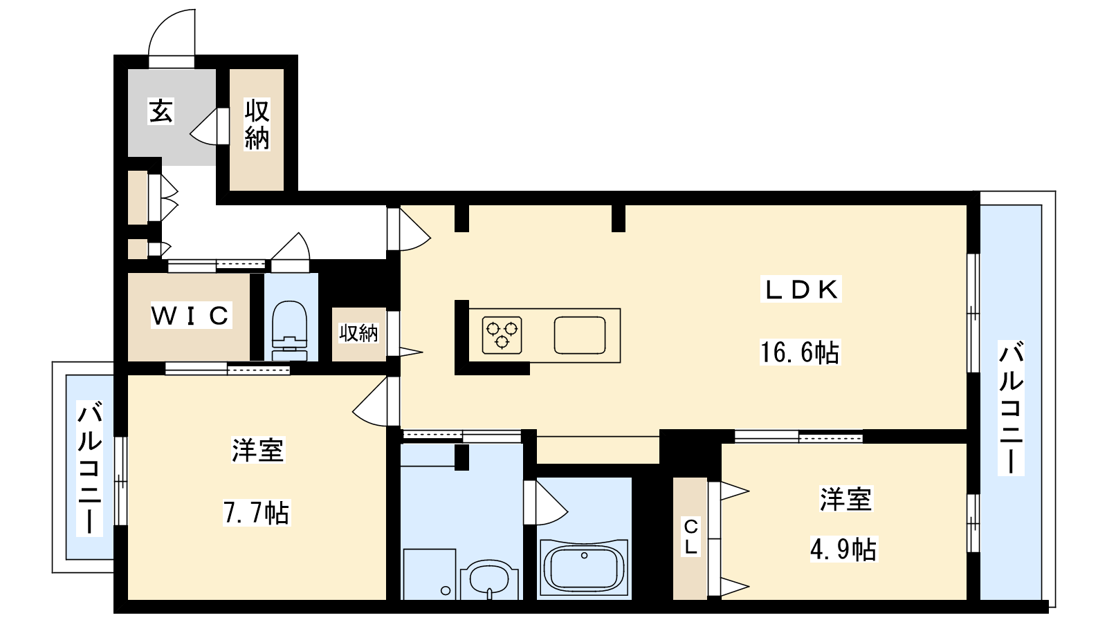 - LDK16.6帖、洋室7.7帖、洋室4.9帖