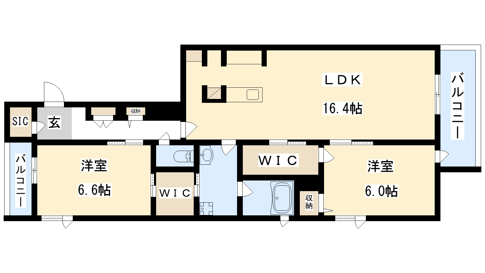 - LDK16.4帖、洋室6.6帖、洋室6帖