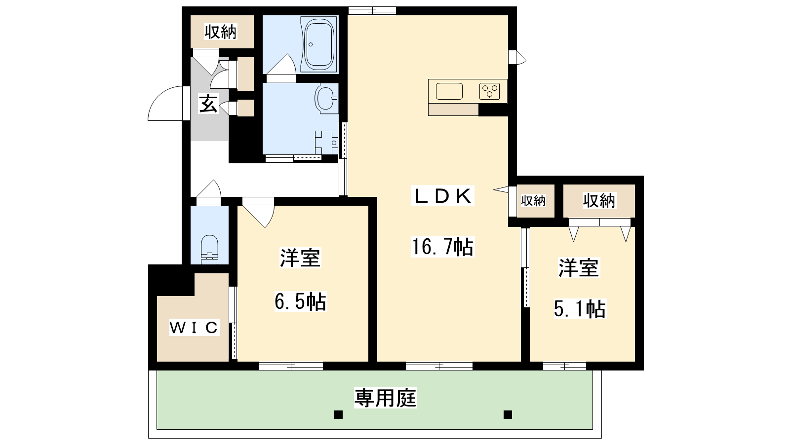 - LDK16.7帖、洋室6.5帖、洋室5.1帖